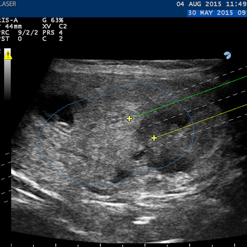 • Software di Pianificazione del trattamento nell’unità ecografica che consente di scegliere, tra le differenti possibilità di trattamento, la più adatta e sicura ad ogni specifico caso e di controllare la corretta posizione degli aghi all’interno del nodulo.