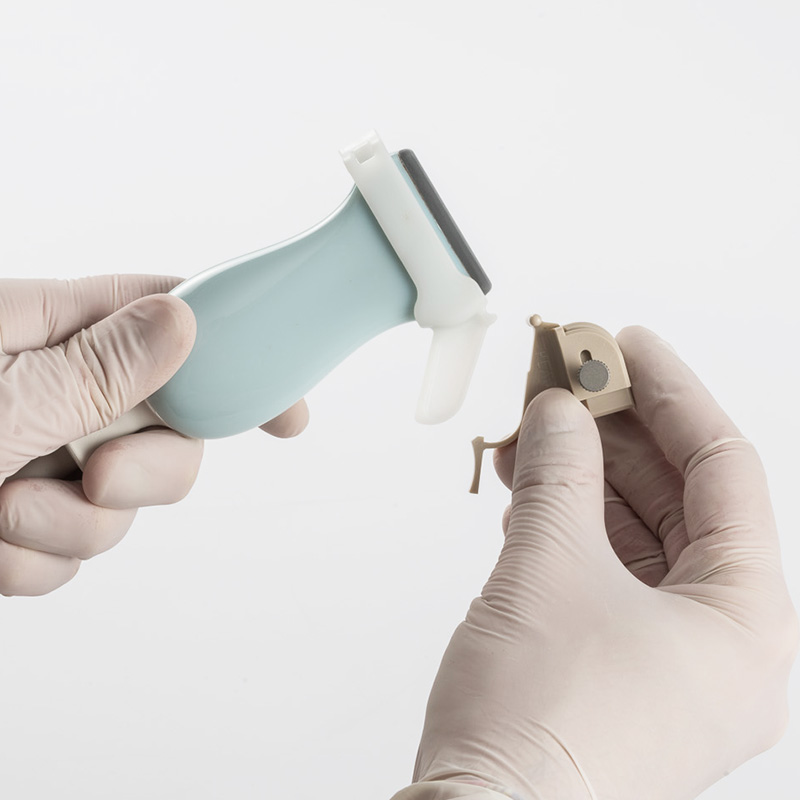 • dedicati Sistemi Guida multi-applicatore per sonde ecografiche dedicate al distretto anatomico della tiroide con i relativi Software Biopsia che visualizzano le linee guida sullo schermo;
