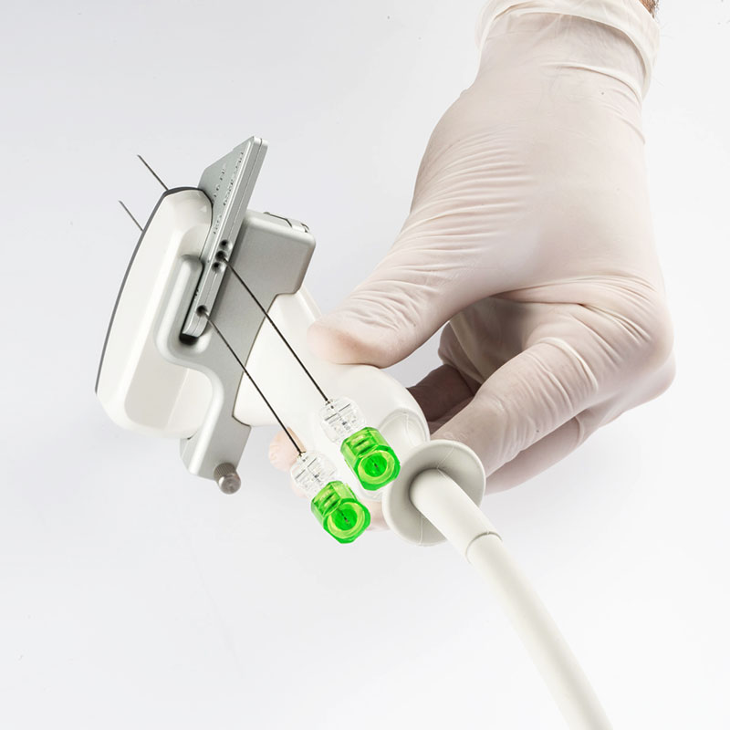 3./4. Sonda Esaote CA541 con dedicato Sistema Guida multifibra